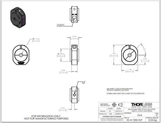 Thorlabs索雷博 IO-4-1550-VLP - 自由空间隔离器