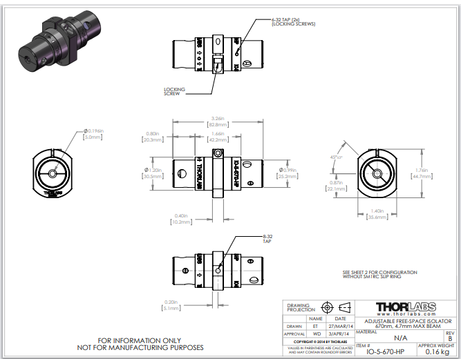 Thorlabs索雷博 IO-5-670-HP - 自由空间光隔离器