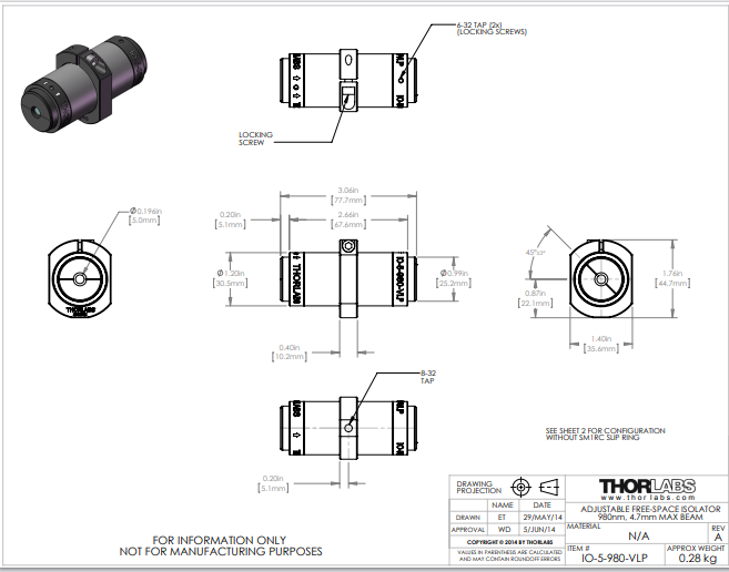 Thorlabs索雷博 IO-5-980-VLP - 自由空间隔离器