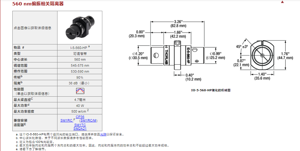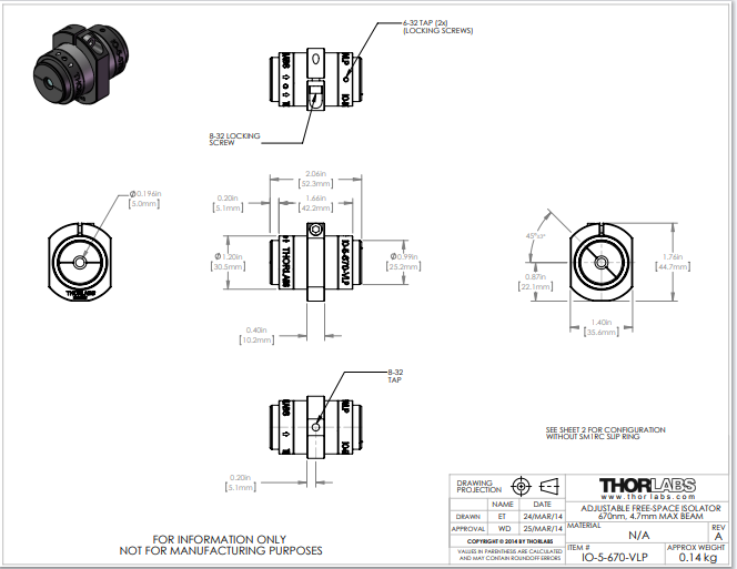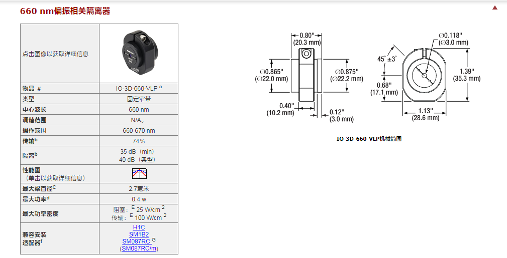 Thorlabs索雷博 IO-5-670-VLP - 自由空间光隔离器