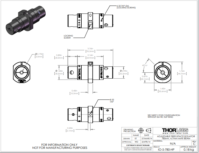 Thorlabs索雷博 IO-5-780-HP - 自由空间隔离器