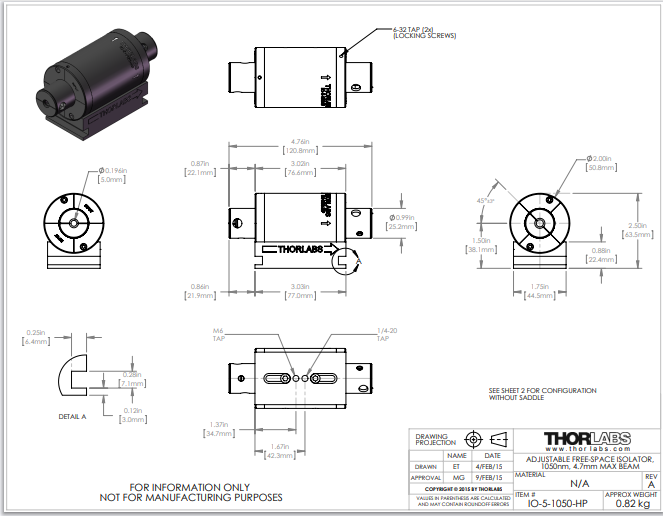Thorlabs索雷博 IO-5-1050-HP - 自由空间隔离器