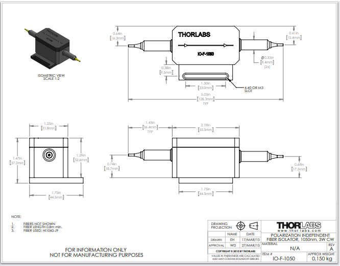 Thorlabs索雷博 IO-F-1050 - 光纤隔离器