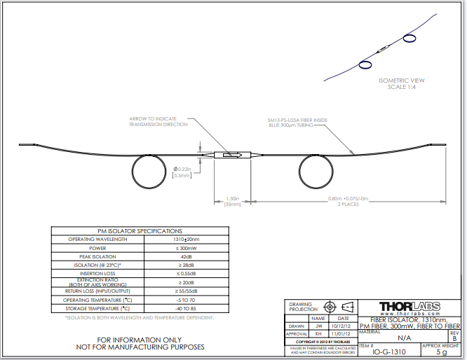Thorlabs索雷博 IO-G-1310 - 光纤隔离器