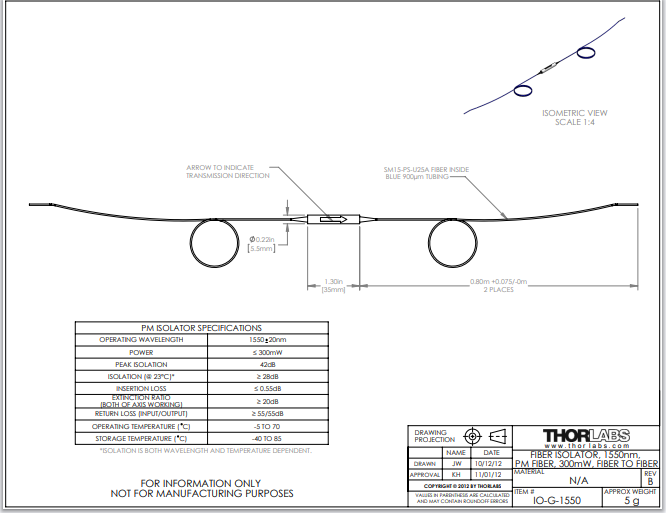 Thorlabs索雷博 IO-G-1550 - 光纤隔离器