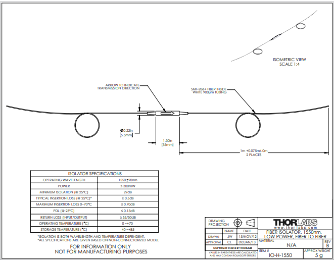 Thorlabs索雷博     IO-H-1550 - 光纤隔离器