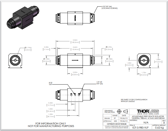 Thorlabs索雷博     IOT-5-980-VLP - 自由空间串联隔离器