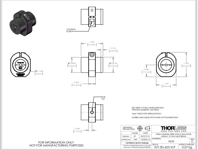 Thorlabs索雷博 IOT-3D-633-VLP - 自由空间光隔离器