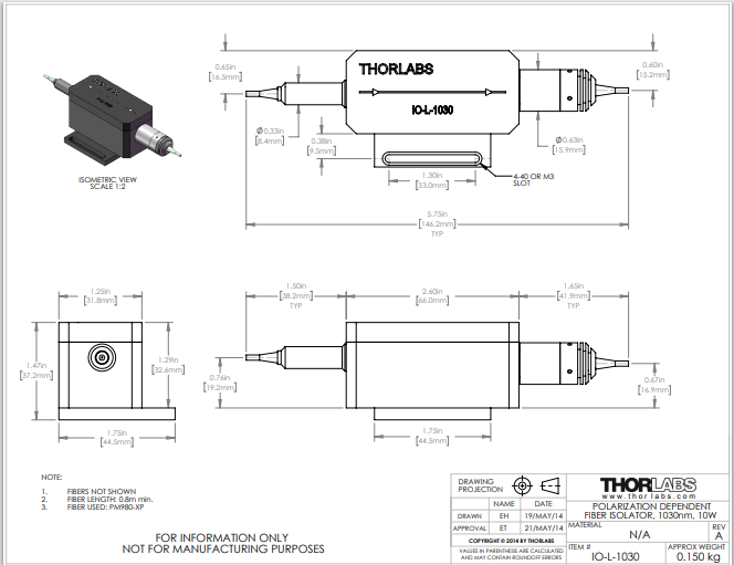 Thorlabs索雷博 IO-L-1030 - 光纤隔离器
