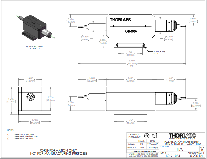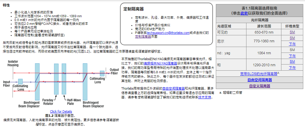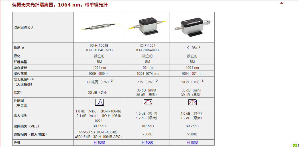 Thorlabs索雷博     IO-K-1064 - 光纤隔离器