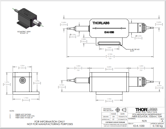 Thorlabs索雷博 IO-K-1030 - 光纤隔离器