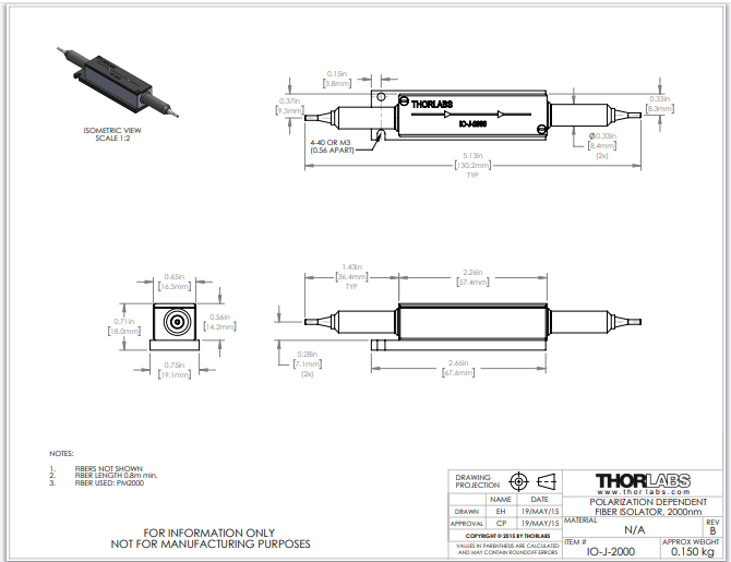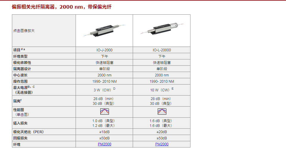 Thorlabs索雷博 IO-J-2000 - 光纤隔离器