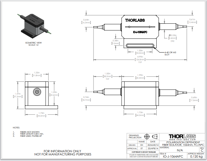 Thorlabs索雷博 IO-J-1064APC - 光纤隔离器
