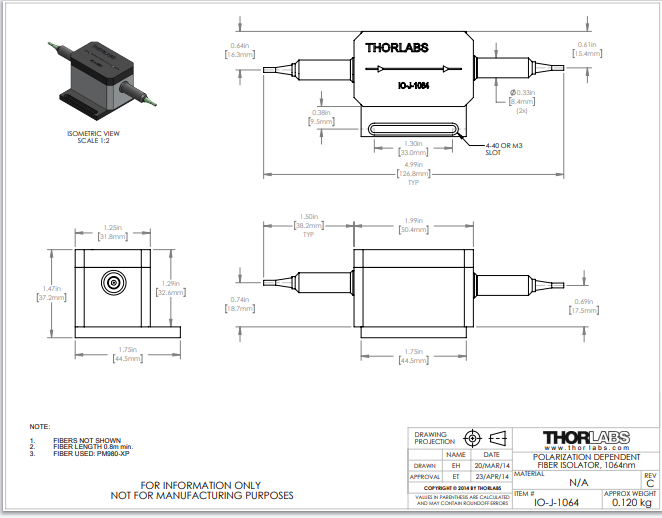 Thorlabs索雷博     IO-J-1064 - 光纤隔离器