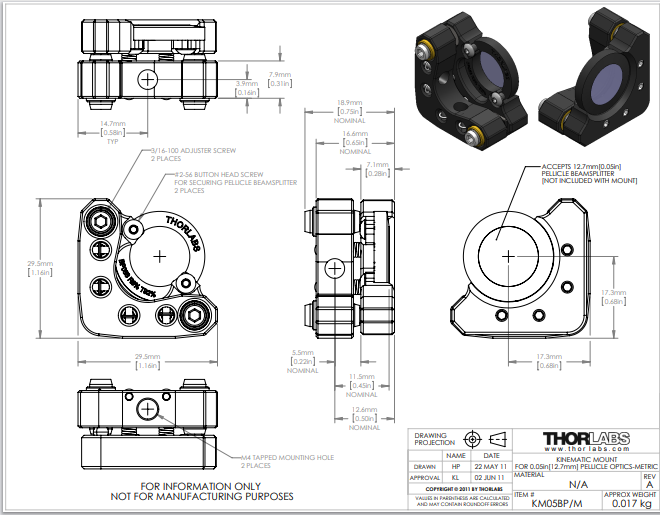 Thorlabs索雷博 KM05BP/M - 光学调整架