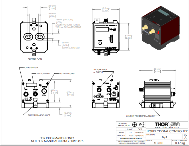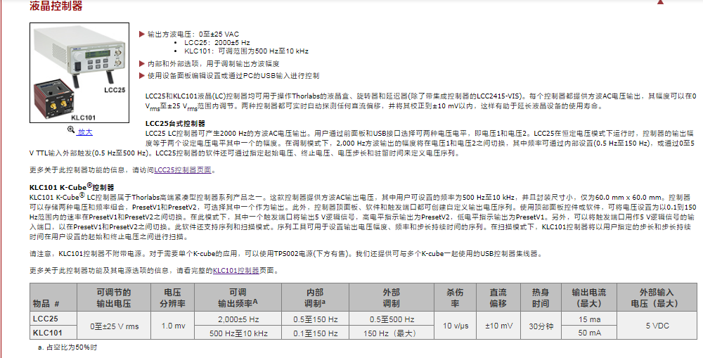 Thorlabs索雷博 KLC101 - K-Cube液晶控制器