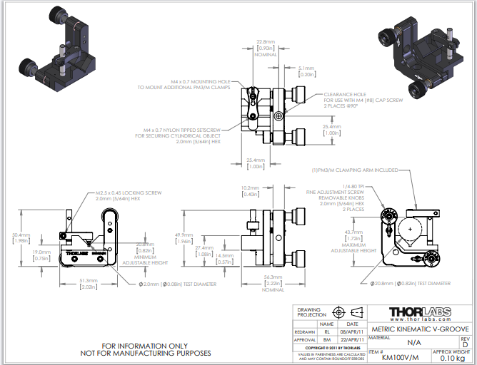 Thorlabs索雷博 KM100V/M - 小型可调V型压块安装座