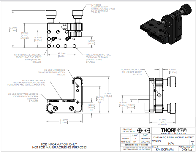 Thorlabs索雷博     KM100PM/M - 光学棱镜调整架