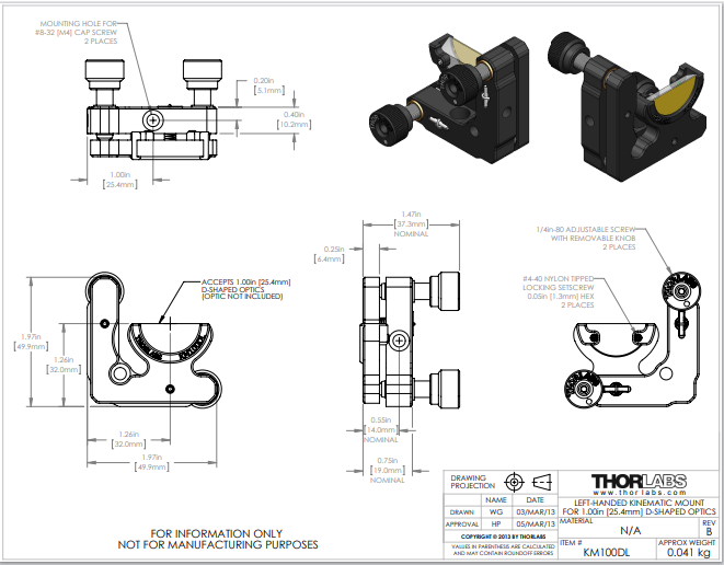 Thorlabs索雷博 KM100DL - 左手系光学调整架