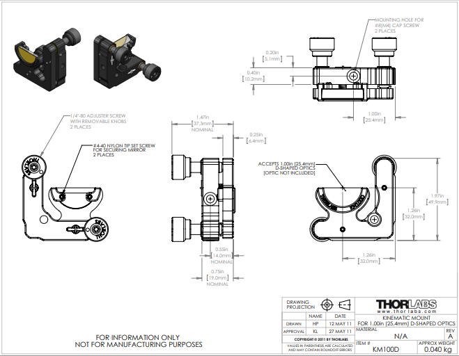 Thorlabs索雷博 KM100D - 右手系光学调整架