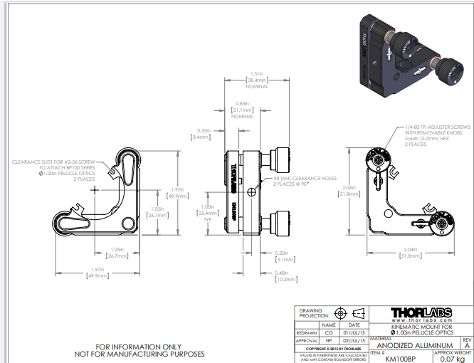 Thorlabs索雷博 KM100BP - 光学调整架