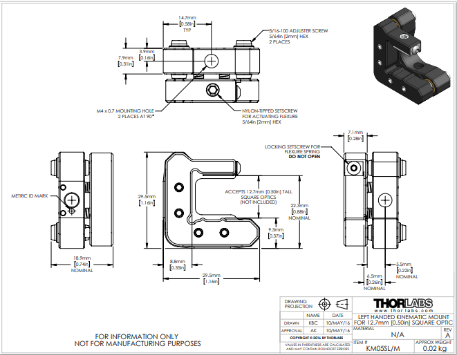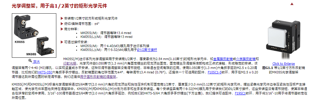 Thorlabs索雷博     KM05SL/M - 光学调整架