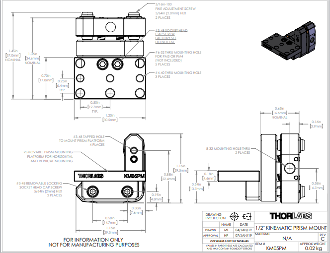Thorlabs索雷博     KM05PM - 光学棱镜调整架