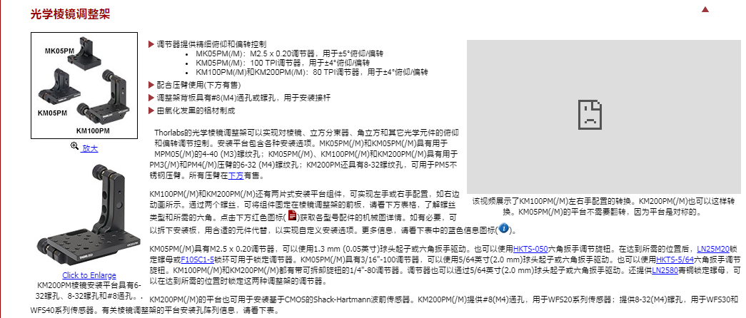 Thorlabs索雷博 KM05PM - 光学棱镜调整架