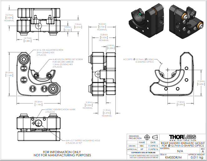 Thorlabs索雷博     KM05DR/M - 右手系光学调整架
