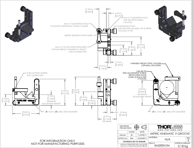Thorlabs索雷博 KM200V/M - 大型可调V型压块安装座