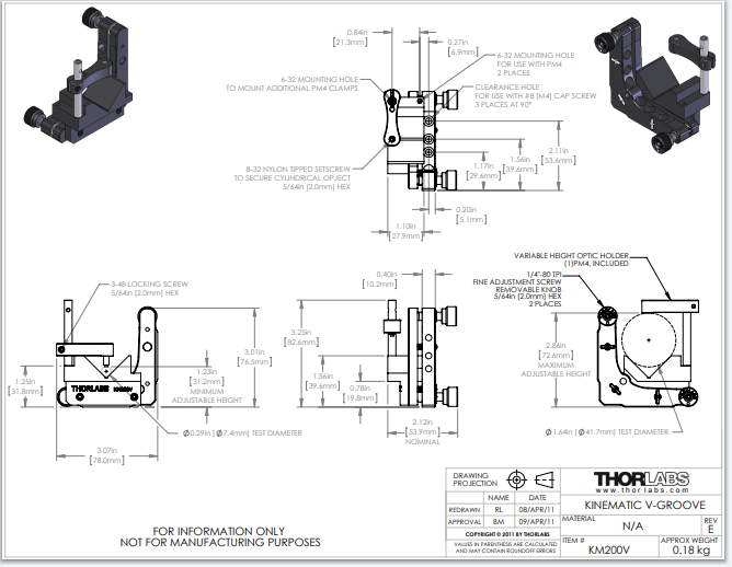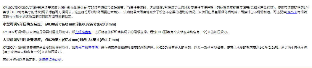 Thorlabs索雷博 KM200V - 大型可调V型压块安装座