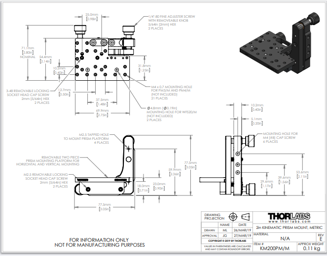 Thorlabs索雷博 KM200PM/M - 光学棱镜调整架
