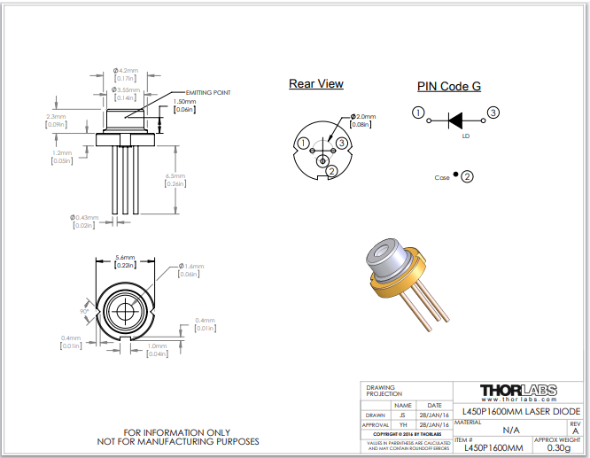 Thorlabs索雷博 L450P1600MM - 激光二极管