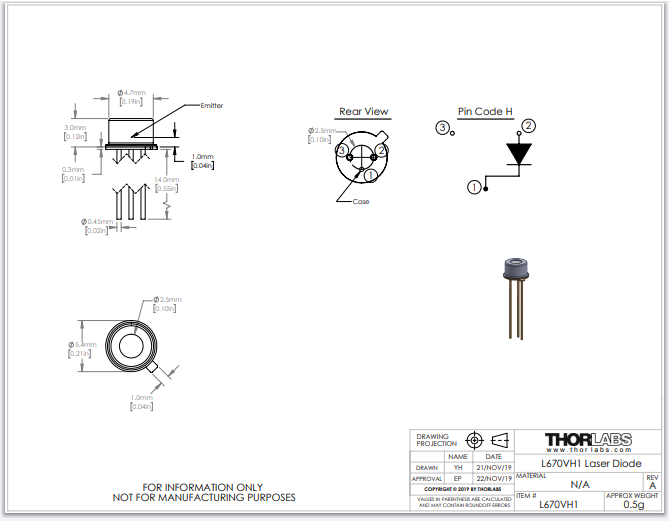 Thorlabs索雷博 L670VH1 - VCSEL激光二极管