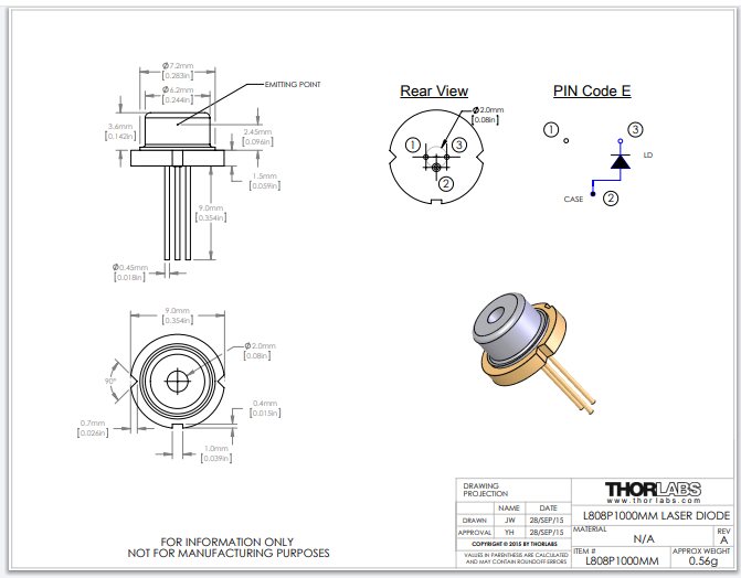 Thorlabs索雷博 L808P1000MM - 激光二极管