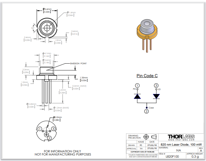 Thorlabs索雷博 L820P100 - 激光二极管