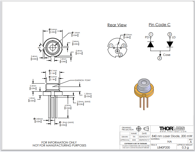 Thorlabs索雷博 L840P200 - 激光二极管