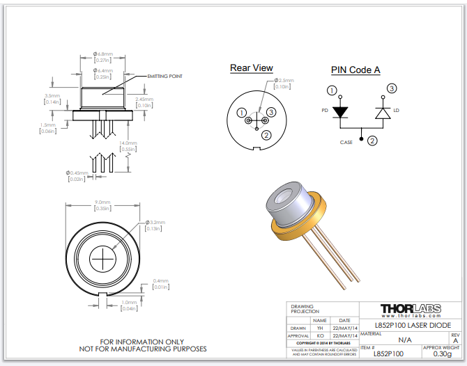 Thorlabs索雷博 L852P100 - 激光二极管