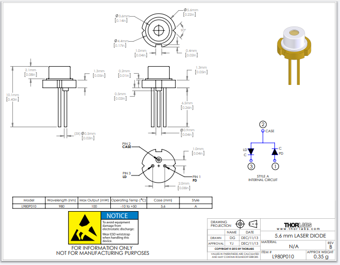 Thorlabs索雷博 L980P010 - 激光二极管