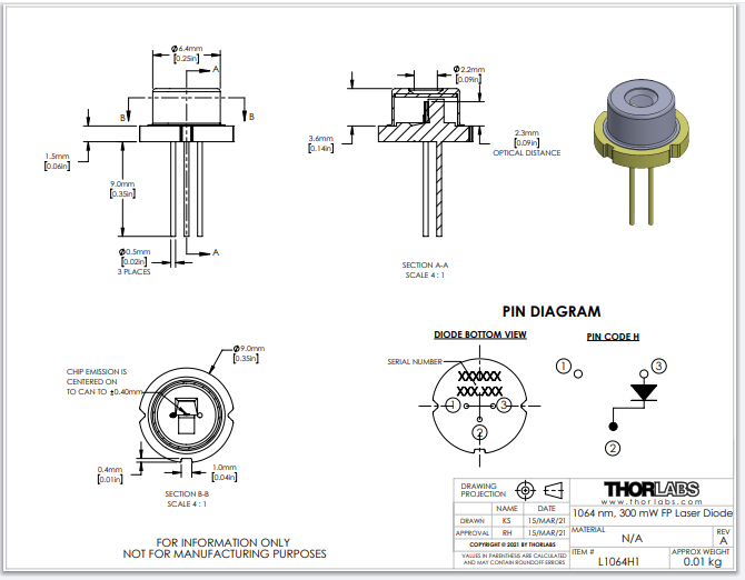 Thorlabs索雷博 L1064H1 - 激光二极管