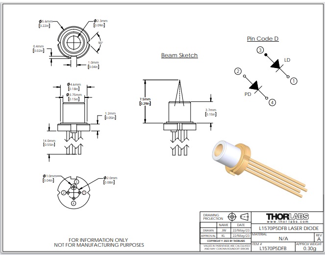 Thorlabs索雷博 L1570P5DFB - 分布反馈式激光二极管