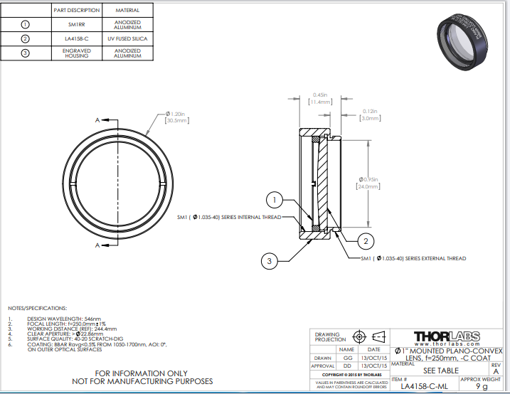 Thorlabs索雷博     LA4158-C-ML   平凸透镜