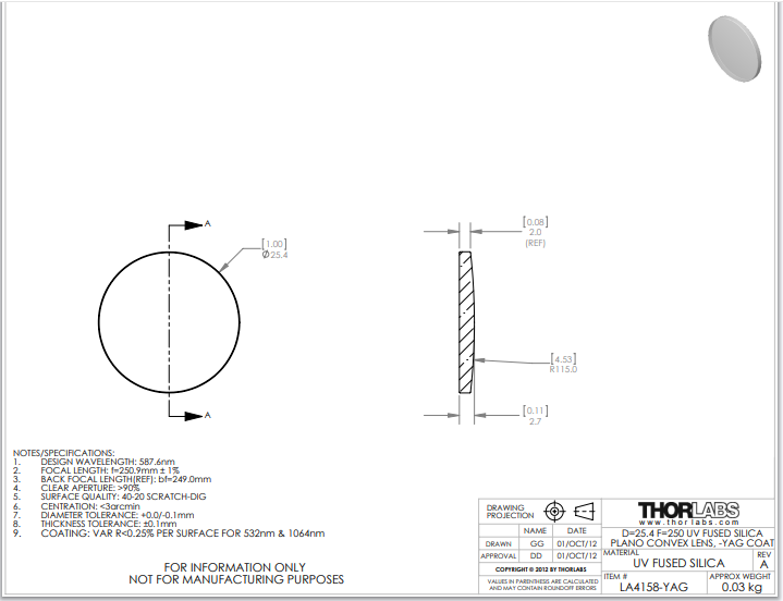 Thorlabs索雷博     LA4158-YAG   平凸透镜
