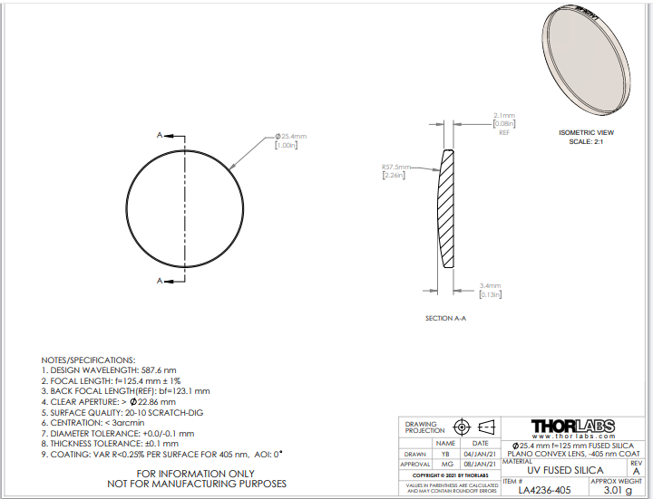 Thorlabs索雷博     LA4236-405   平凸透镜