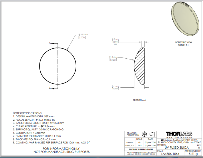 Thorlabs索雷博 LA4306-1064 平凸透镜