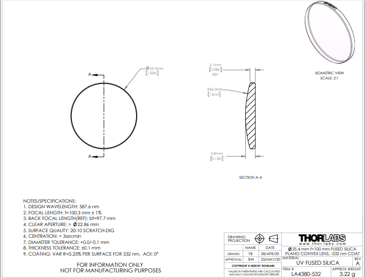 Thorlabs索雷博 LA4380-532 平凸透镜