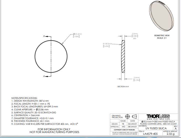Thorlabs索雷博 LA4579-405 平凸透镜