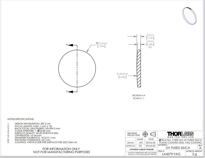 Thorlabs索雷博     LA4579-YAG   平凸透镜