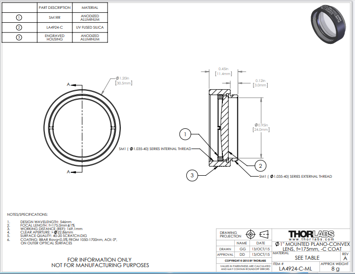 Thorlabs索雷博 LA4924-C-ML 平凸透镜