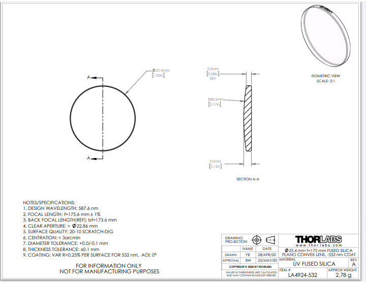Thorlabs索雷博     LA4924-532   平凸透镜